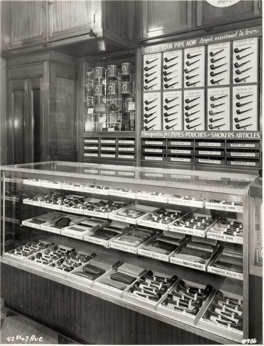 Tobakshandel USA, interiör. Tobaksförsäljning.