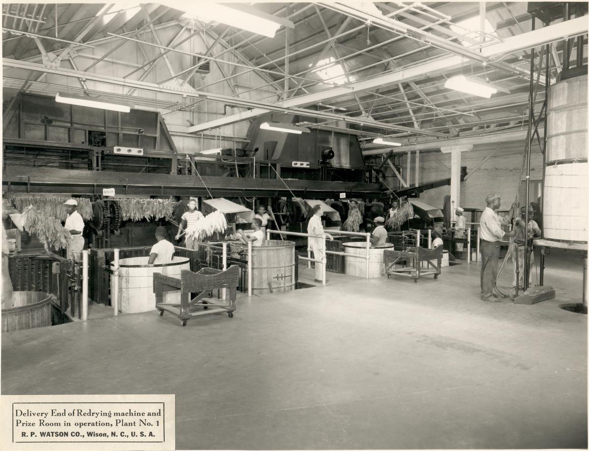 Arbetare inuti tobaksfabrik. Torkning av tobak. Tobaksproduktion.