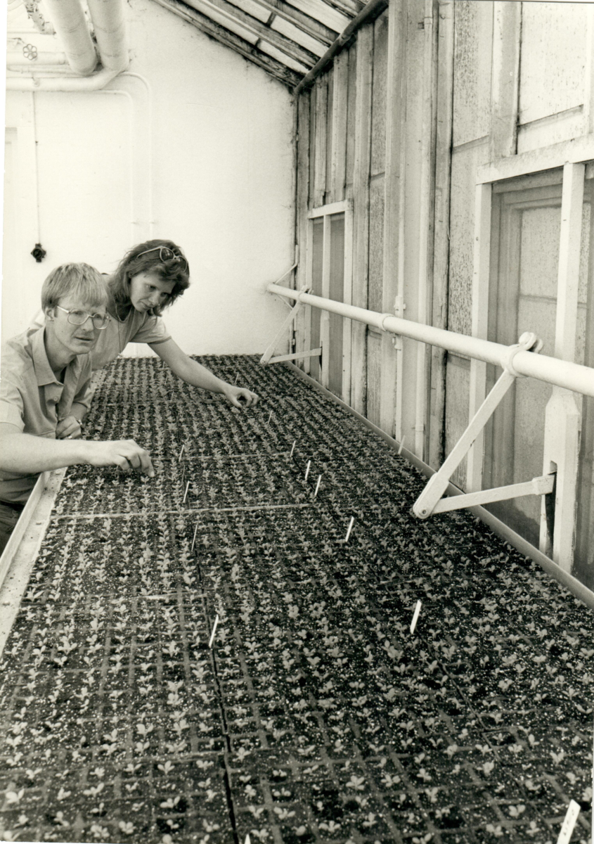 Plantsäng med tobaksplantor. Försöksodling i Lund.