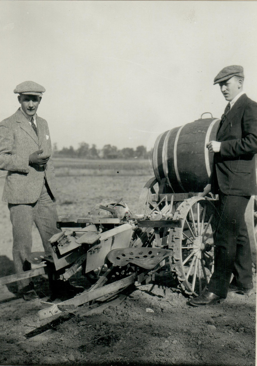 Den amerikanska planteringsmaskinen "Transplanter" på en tobaksodling.
