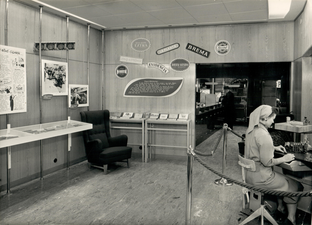 Cigarrer handrullas i Tobaksmonopolets tobakshandel, Norrmalmstorg.