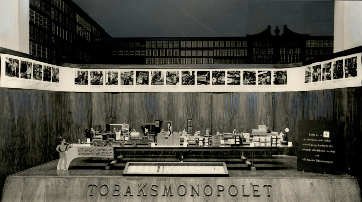 Tobaksmonopolets utställningsmonter som illustrerar tobakens produktionskedja.