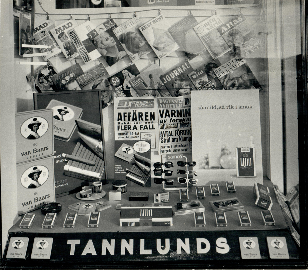 Skyltfönster med van Baars cigariller i F.O Tannlunds eftr., Prästgatan, Östersund.