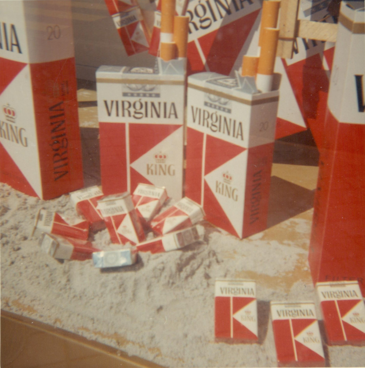 Skyltfönster med reklam för Virginia King-cigaretter. Kreditbanken, Dalaplan, Malmö. Bild tagen i maj 1964.