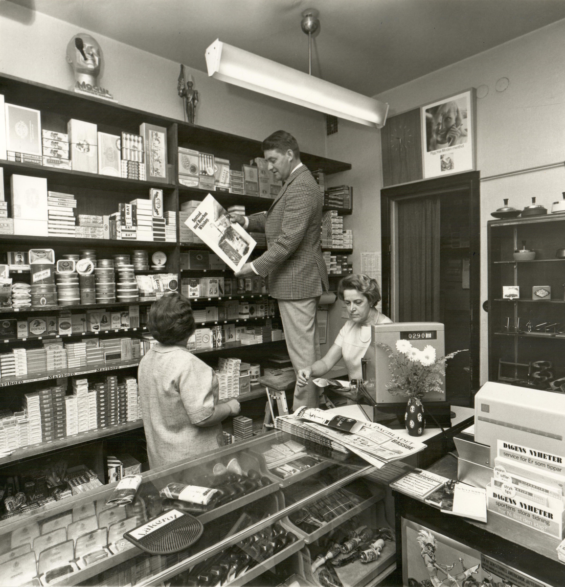 Representantsarbete 1968. Tobaksaffär på Norrlandsgatan.