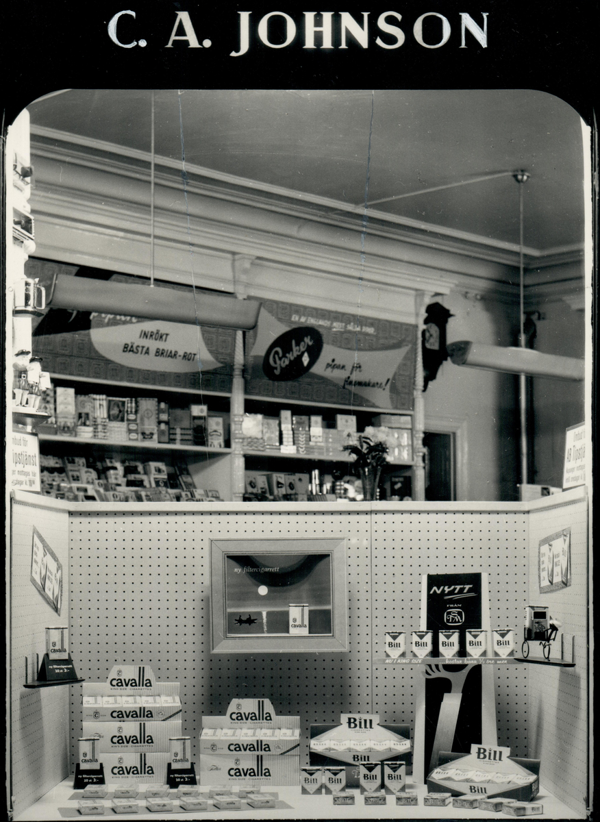 Skyltfönster i C.A. Johnsons tobakshandel i Karlskrona