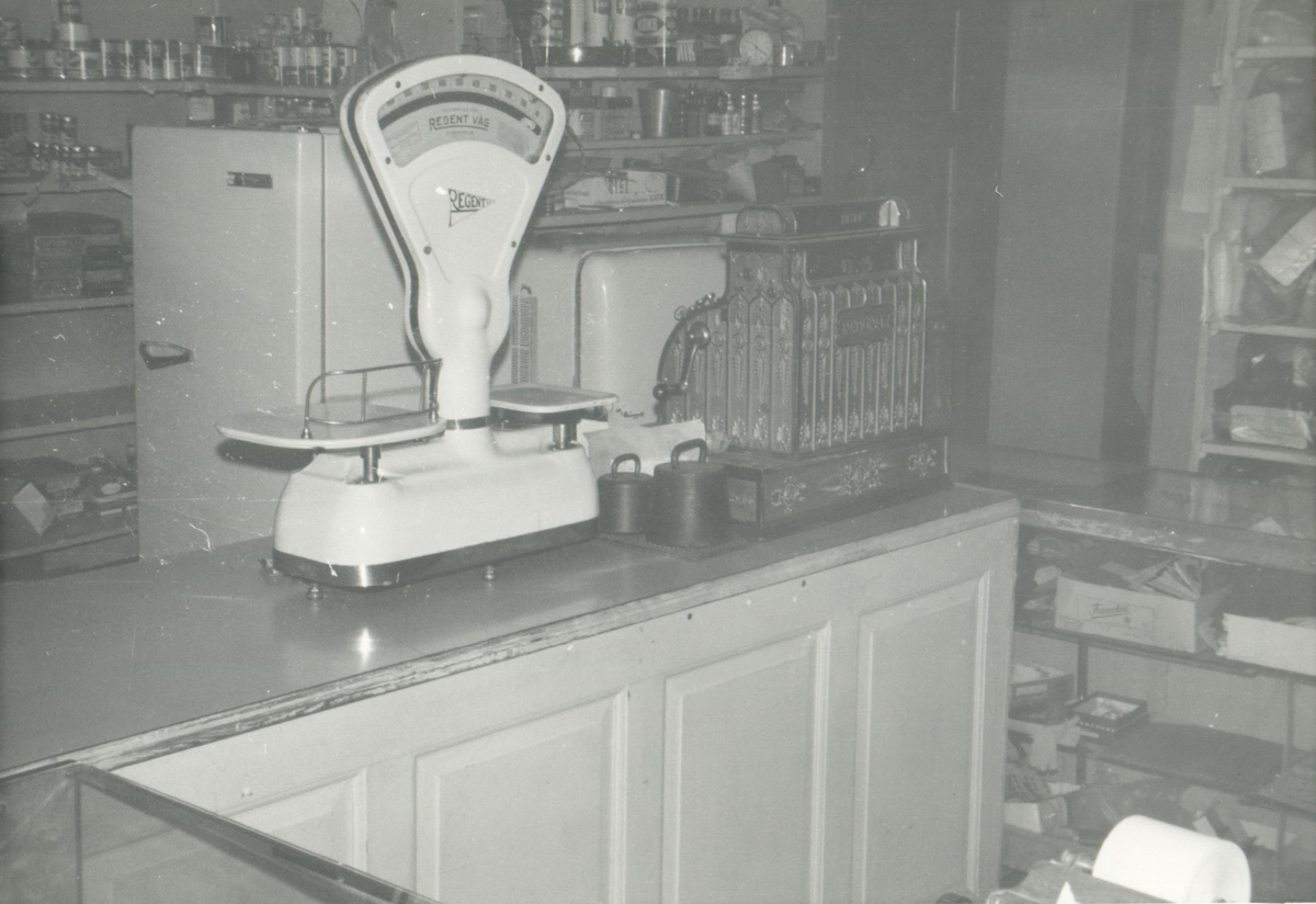 Stålnackes moderna kassaregister. Tobakshandel, interiör.