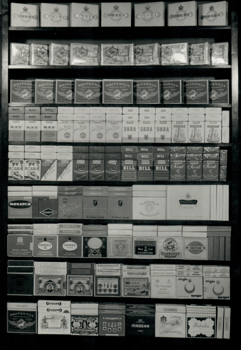 Diverse cigarettmärken i en tobakshandel.