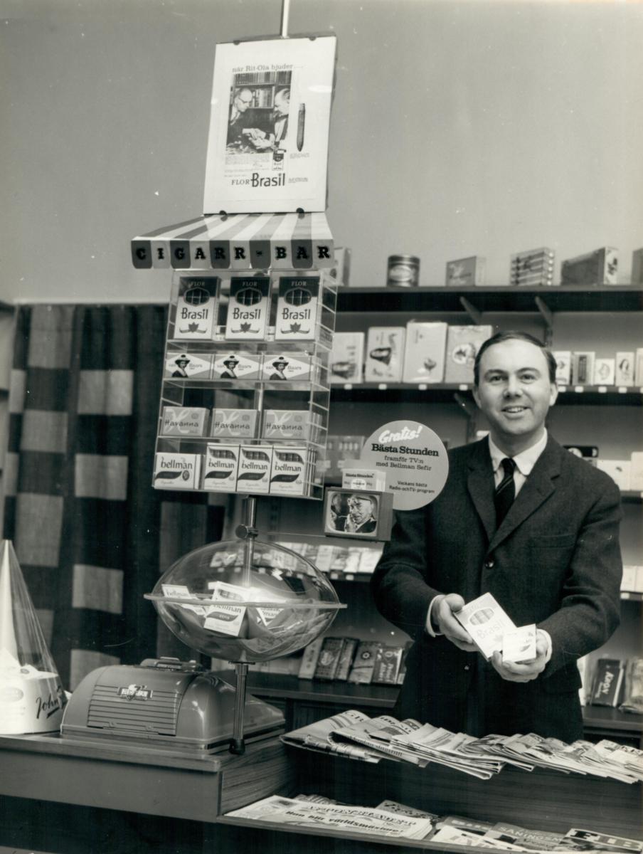 Tobakshandlare Olle Danielsson med den nya Cigarr-baren.