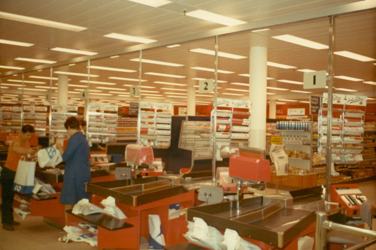 John Silver-cigaretter finns i ett ställ intill kassan i varuhuset Domus i Östersund, 1970.