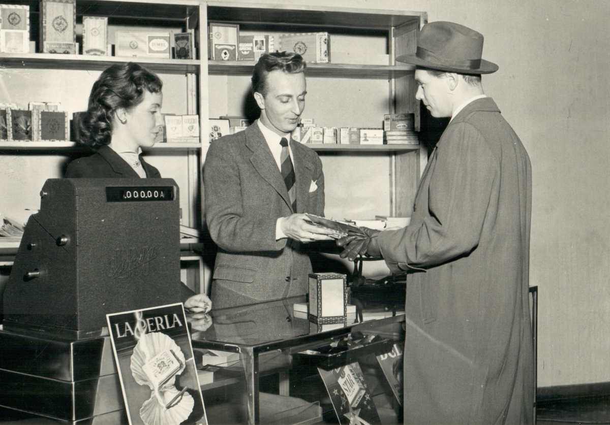 Titel: Tobakshandlare deltar i en kurs om försäljning över disk.
