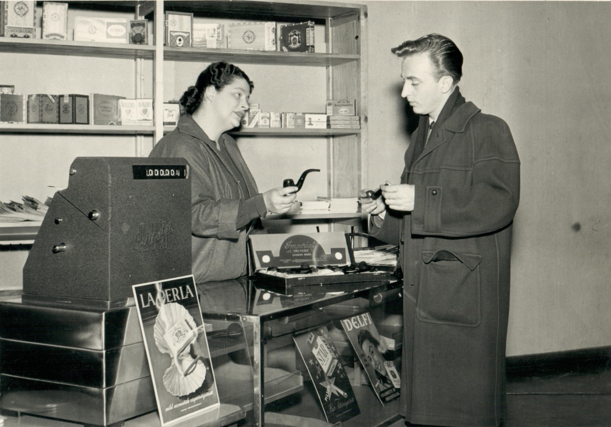 Titel: Tobakshandlare deltar i en kurs om försäljning över disk.