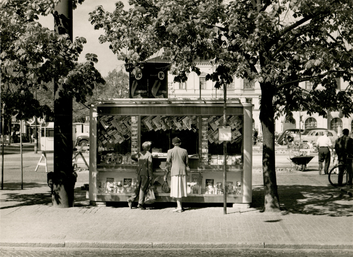 Pressbyråns moderna kiosk på Stora Torget i Karlstad.