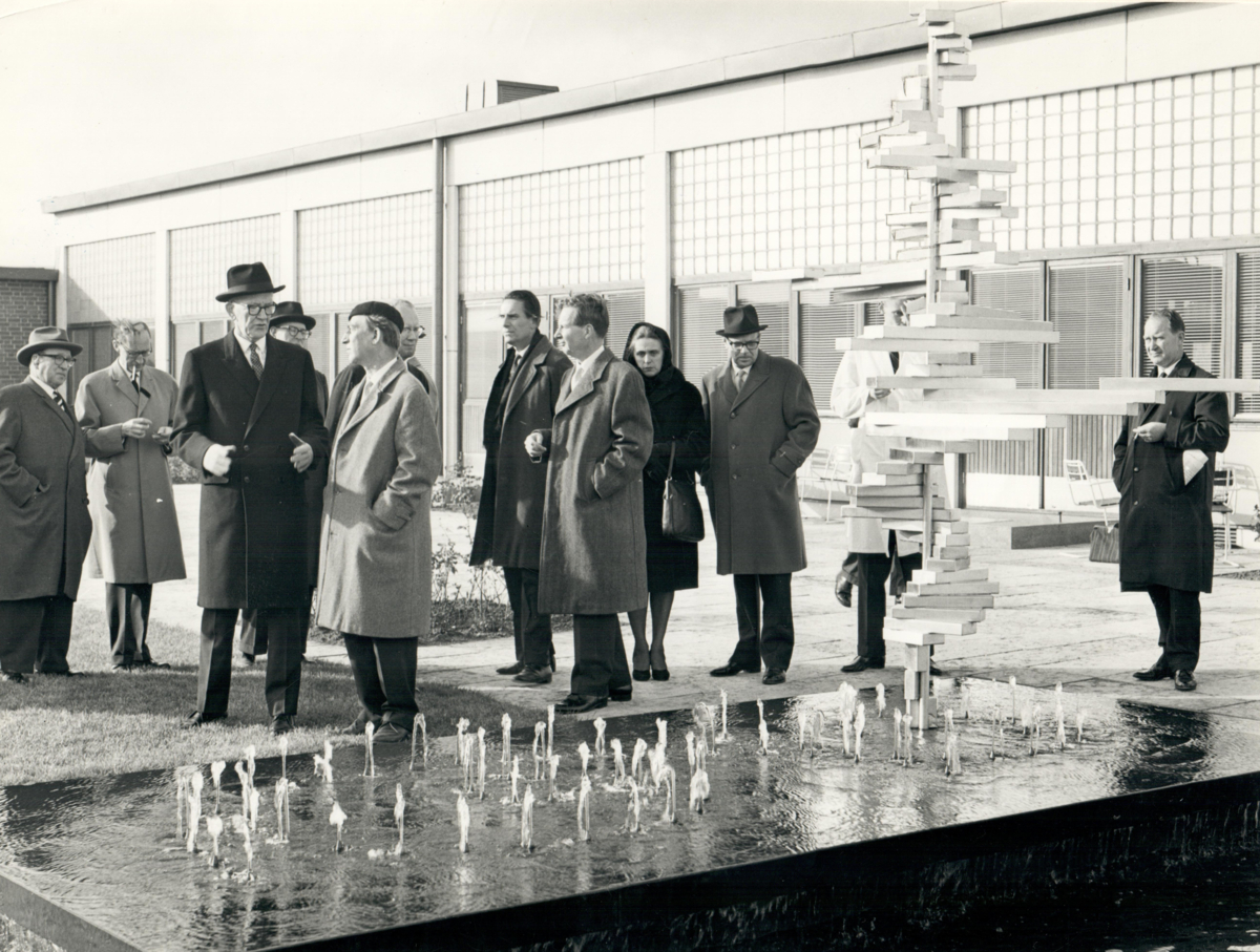 Titel: Arne Jones skulptur "Facettdans" vid Svenska Tobaks AB i Malmö, tillverkad 1962.