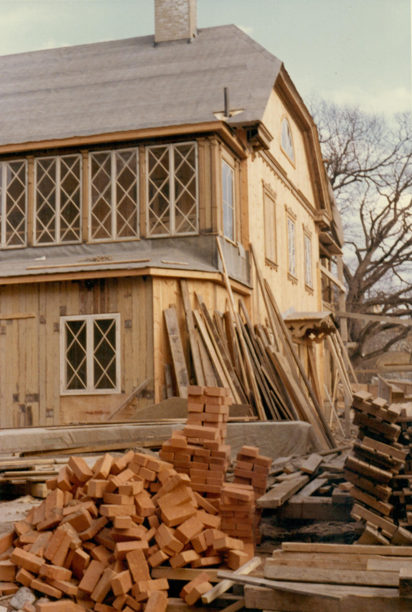 Titel: Gubbhyllan under renovering efter flytten från Hasselbacken till Skansen på 60-talet.