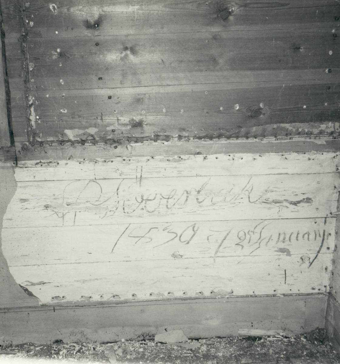 Interiör, Gubbhyllan. Påskrift på en vägg.