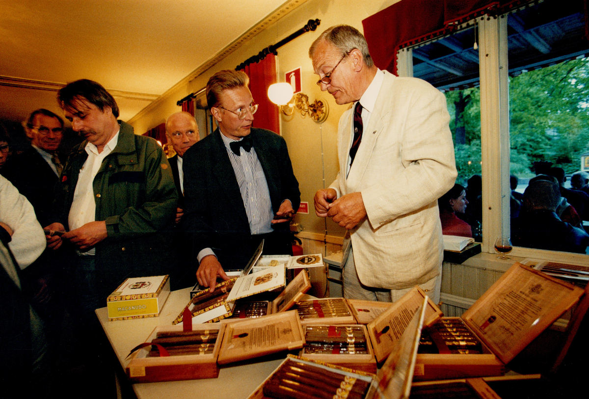 Cigarrer visas upp på Tobaks- och Tändsticksmuseums invigning år 2000.