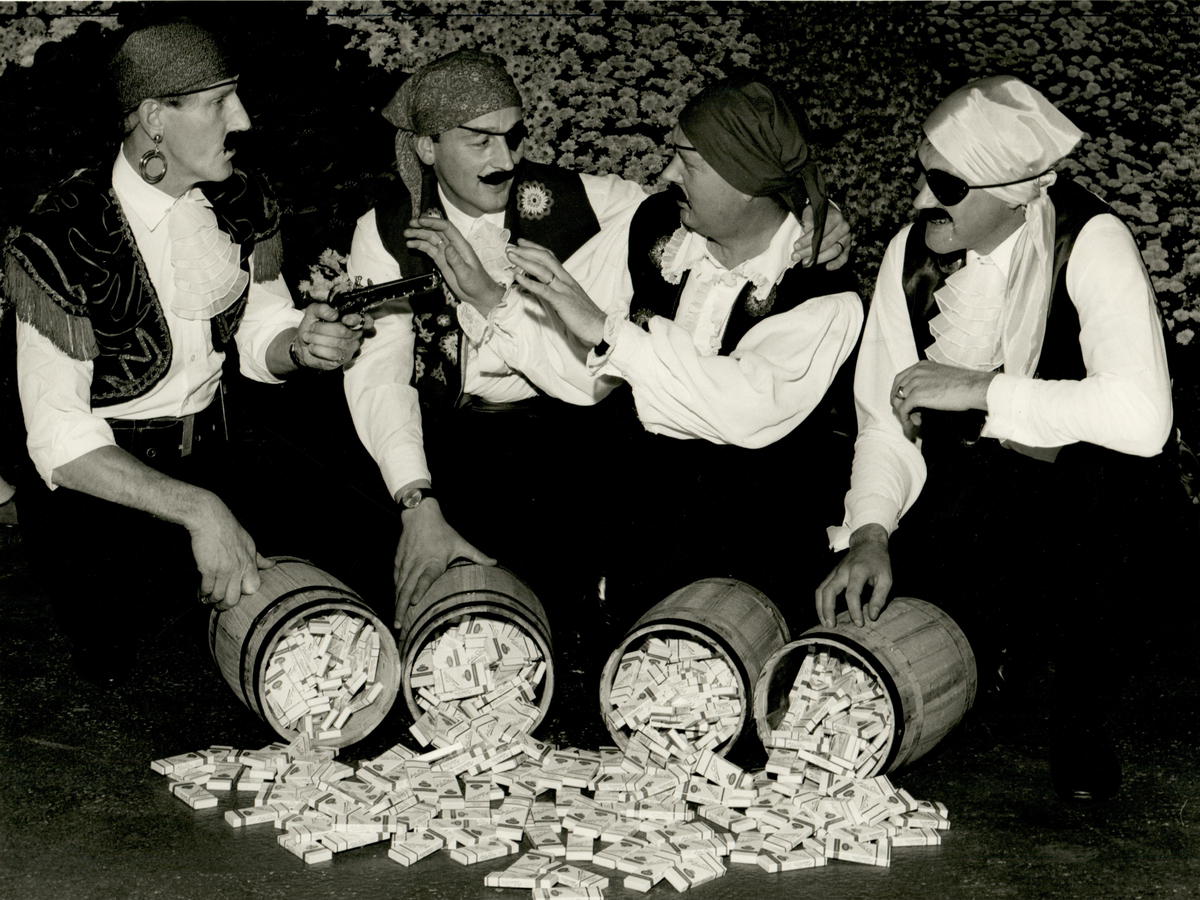 Fyra män utklädda till pirater i en reklambild för John Silver-cigaretter 1967.