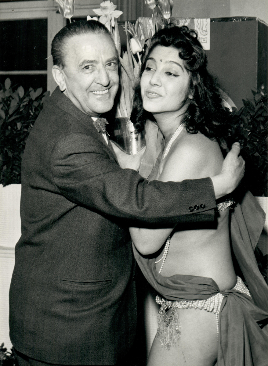En magdansös tar emot blommor av en man efter tobaks-showen vid middagen på Trädgårn i Göteborg.