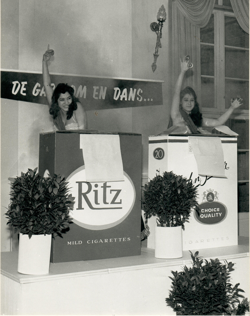 Magdansöser underhåller gästerna i tobaks-showen vid middagen på Trädgårn i Göteborg.
