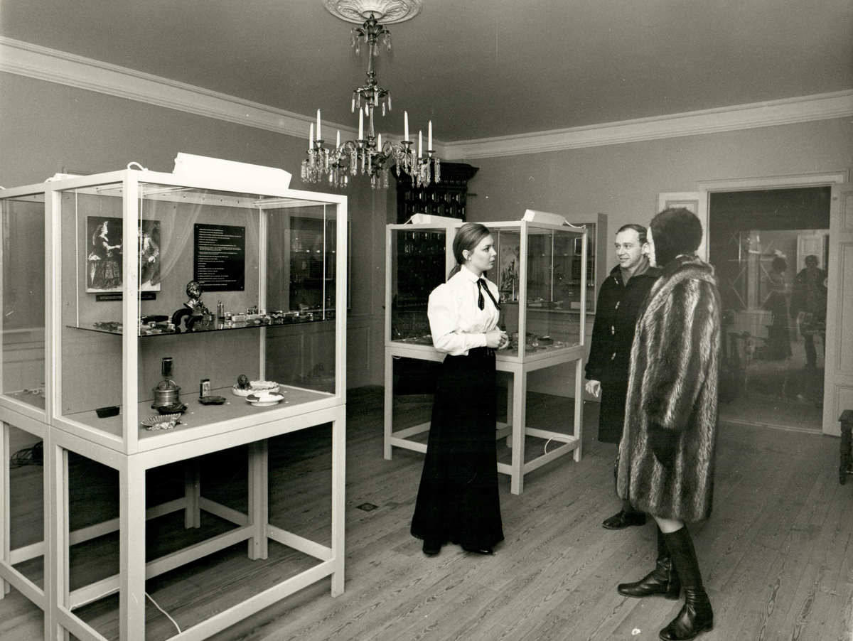 Museipersonal tar emot besökare i Tobaksmuseet.