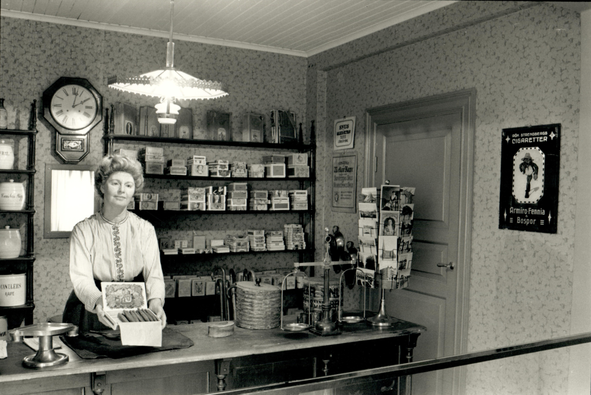 En docka föreställande en tobakshandlare i Tobaksmuseet, mars 1991.