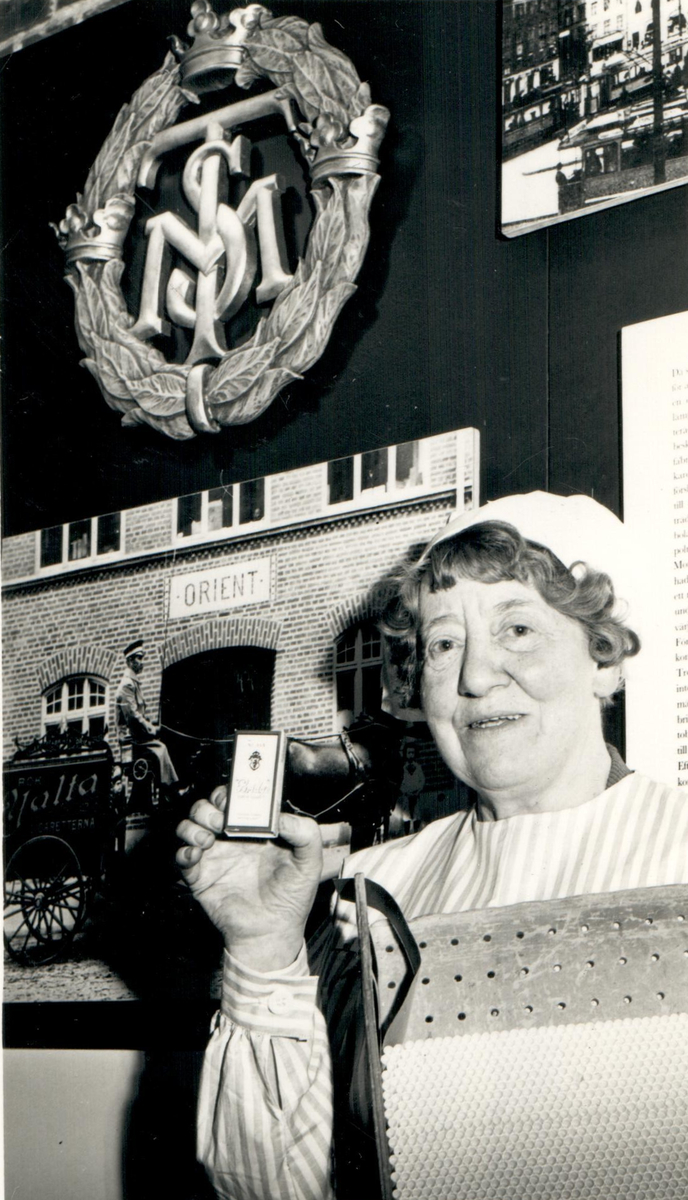 Fröken Gerda Kjellman tillverkar klassiska Bridge i "fabriken" i Tobaksmuseet på Skansen, 1960-tal.