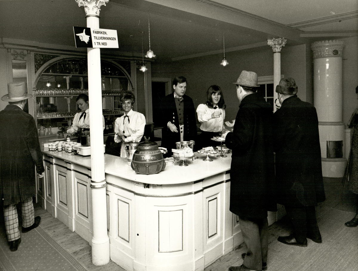 Tobaksmuseets personal betjänar kunder i Gubbhyllan.
