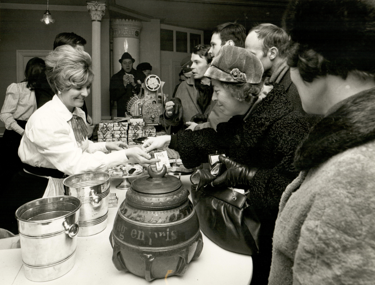 Tobaksmuseets personal betjänar kunder i Gubbhyllan.