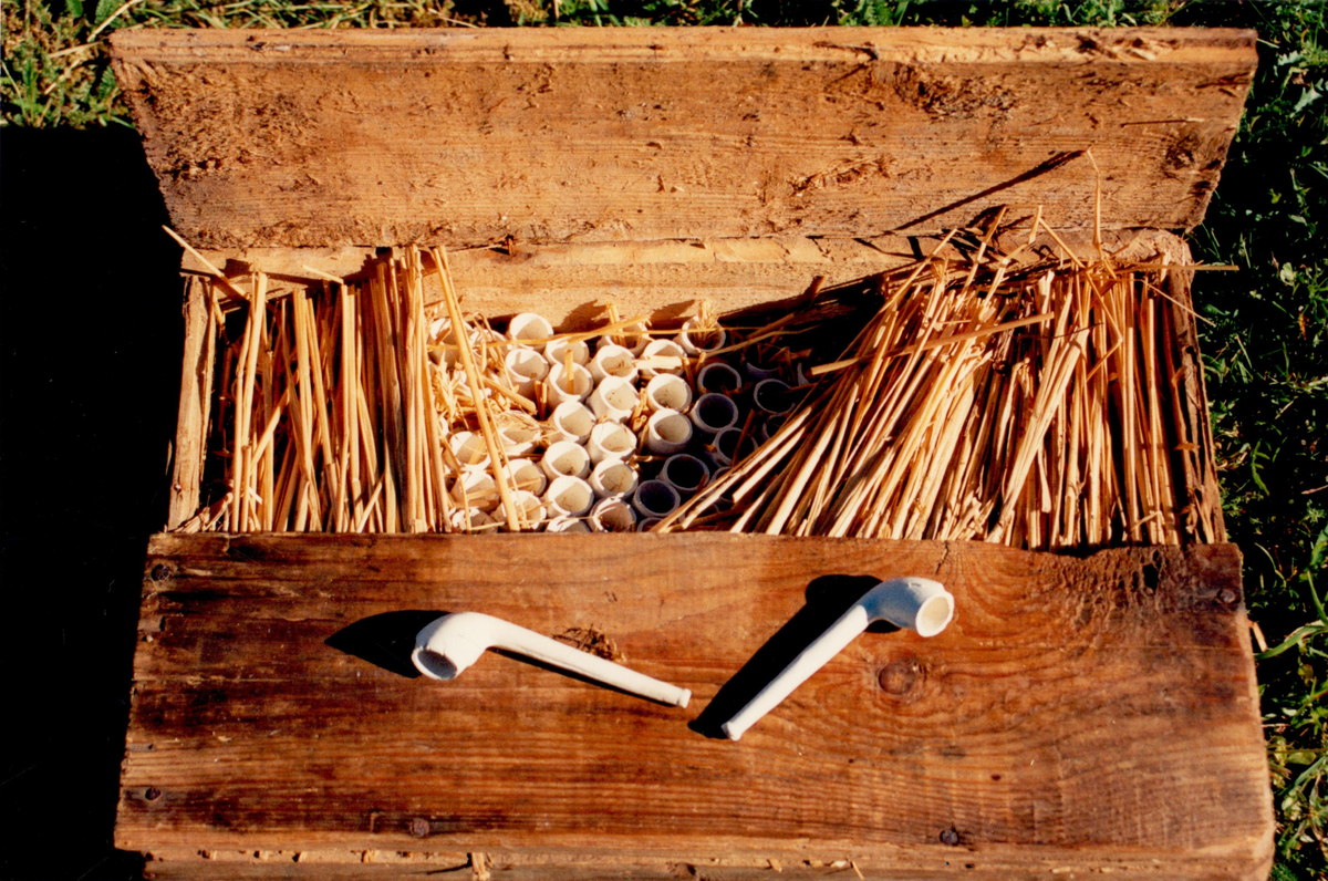 Bild på kritpipor som användes i Arne Åkerhagens bok "Pipmakare i värmlandsskogarna: de sista kritpipsmakarna i Sverige".
