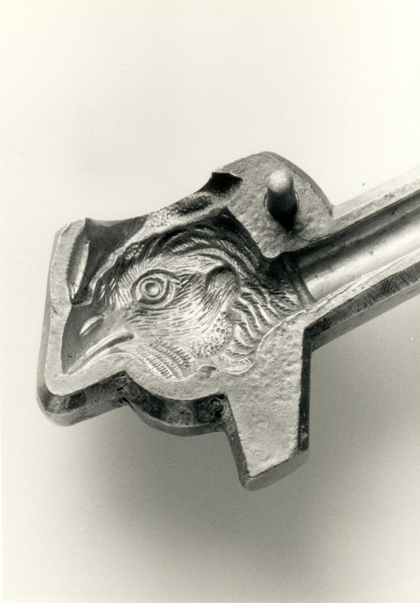 Del av kritpipsform med motivet av en örn. Bilden användes i Arne Åkerhagens bok "Pipmakare i Värmlandsskogarna: de sista kritpipsmakarna i Sverige".