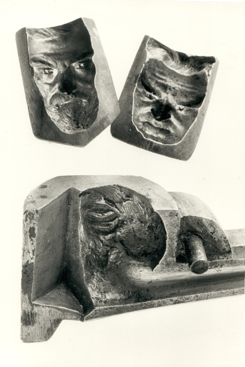 Formar till kritpipstillverkning. Bilden användes i Arne Åkerhagens bok "Pipmakare i Värmlandsskogarna: de sista kritpipsmakarna i Sverige".