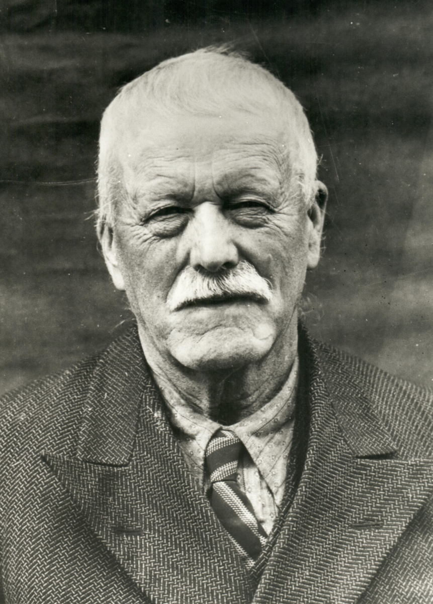 Bild på en äldre herre, eventuellt en kritpipsmakare. Bilden användes i Arne Åkerhagens bok "Pipmakare i Värmlandsskogarna: de sista kritpipsmakarna i Sverige".
