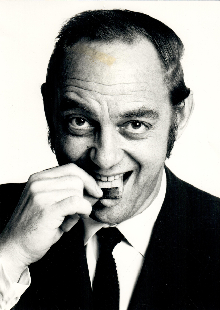 En man snusar Smokeless, Sveriges första portionssnus som lanserades i februari 1973.