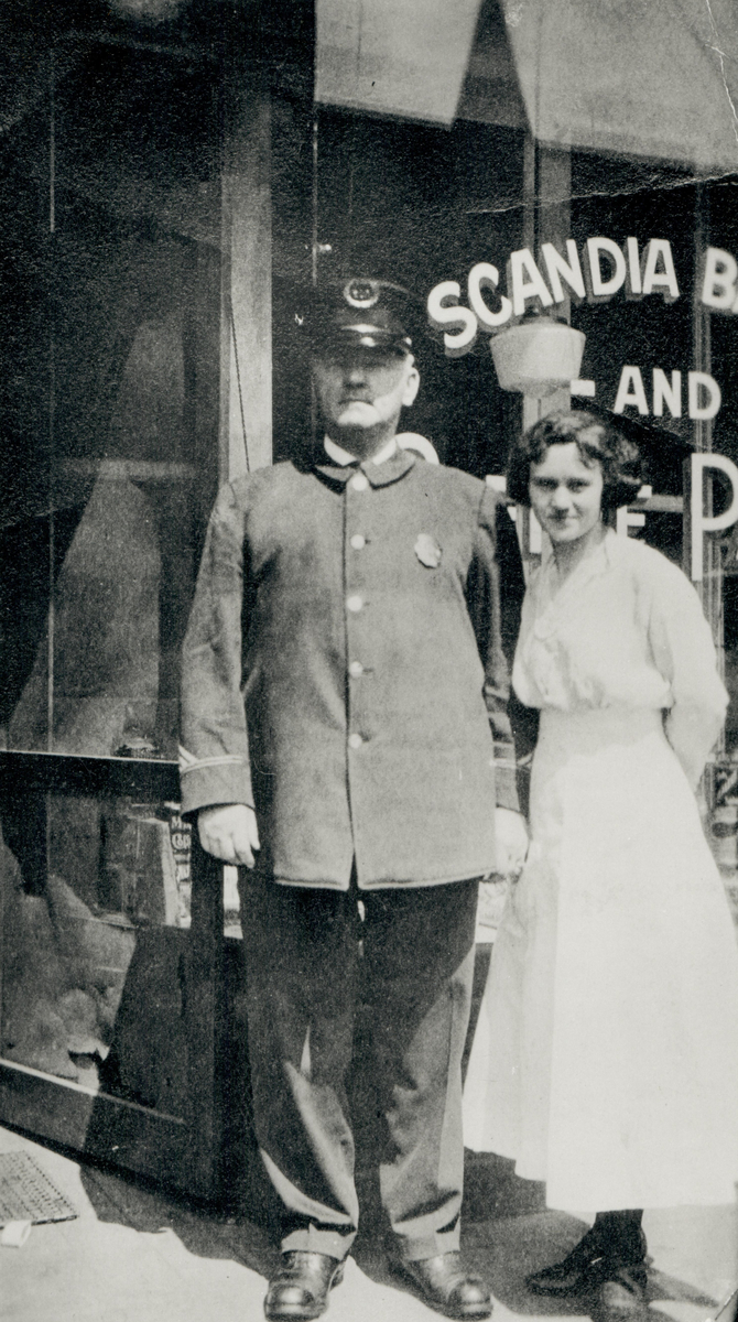 En man och en kvinna framför en butik i USA.