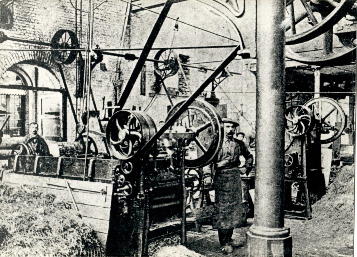 Spånavdelningen inuti Union Allumettiere, tändsticksfabriken i Overboelare.