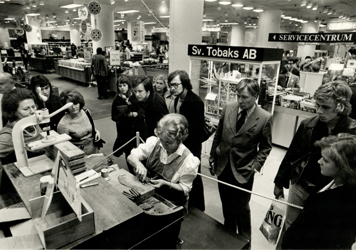 Handrullning av cigarrer vid Nordiska Kompaniets 70-årsjubileum 1972.