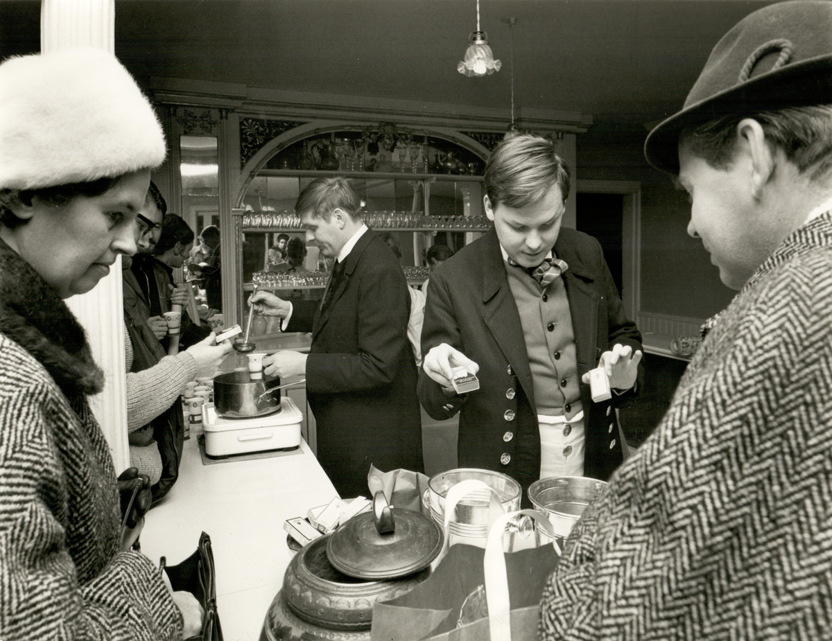 Tobaksmuseets personal betjänar kunder i Gubbhyllan.
