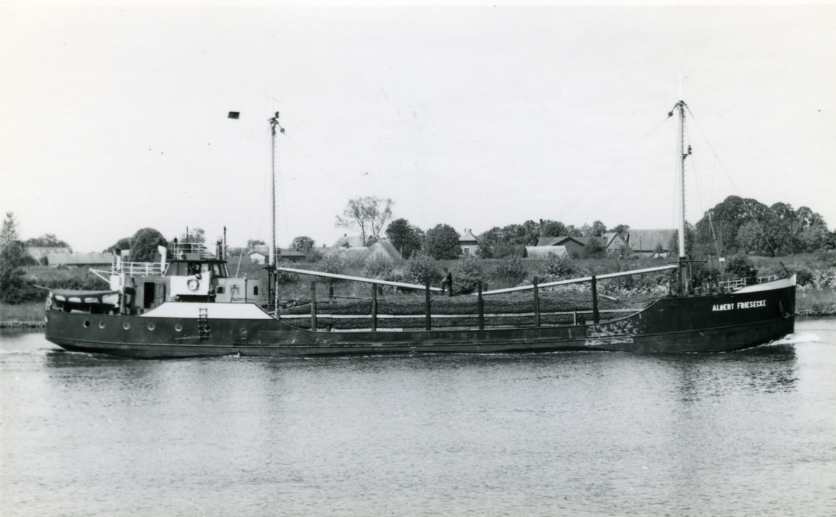 Titel: Ombyggd 1952 av Beidenflether Werft, Paul Peters, Beidenfleth, från läktare till motorfartyg. Ägare:/1952-57/: Ett partrederi Huvudredare: Adalbert Friesecke. Hemort: Rendsburg.