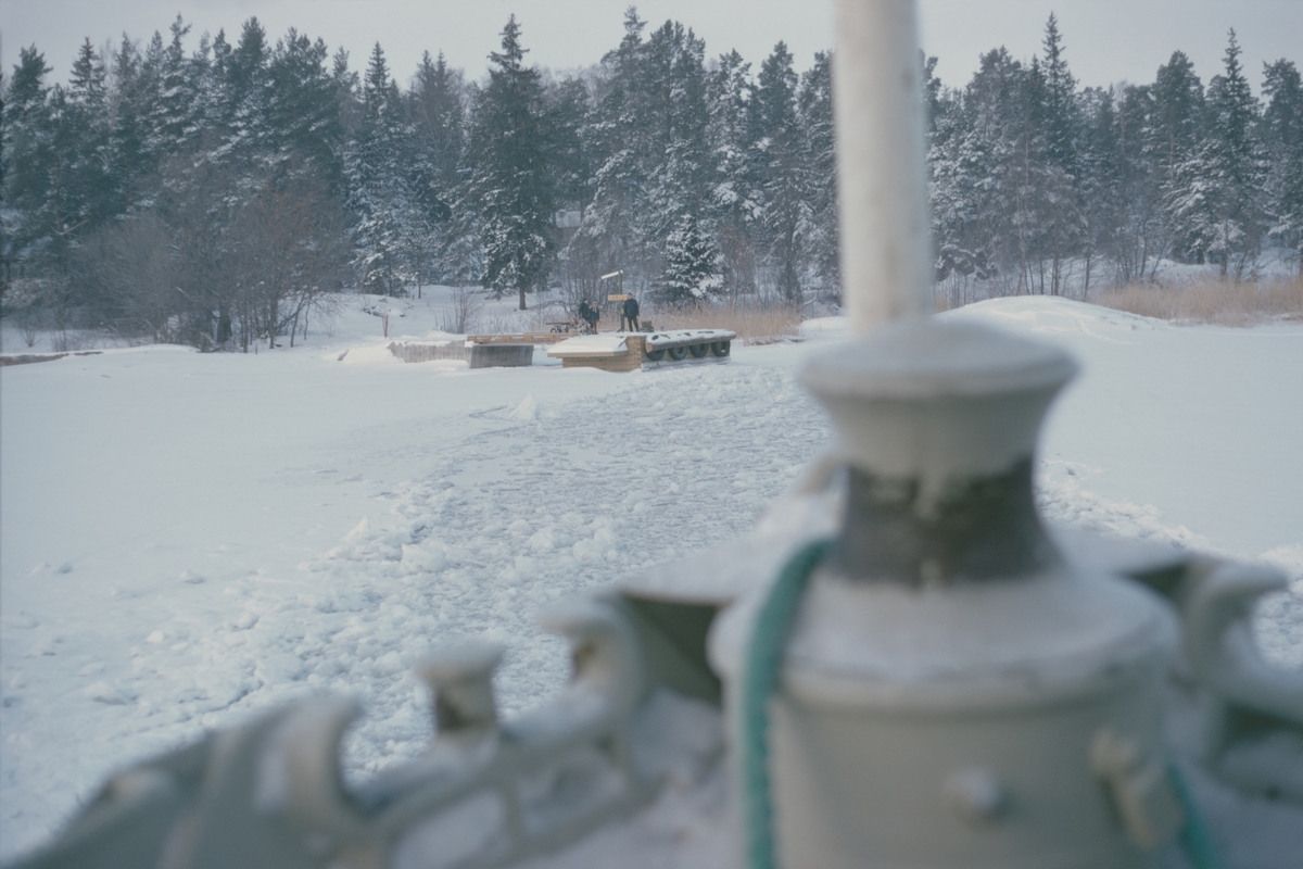 Skärgårdsbåt på väg att angöra Skälviks brygga.