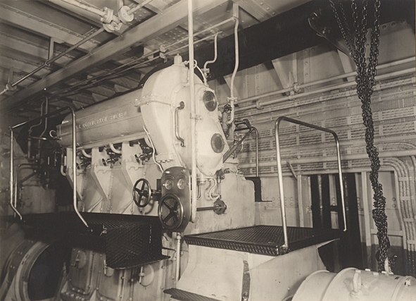 Babords förligaste hjälpmotor sedd snett förifrån.