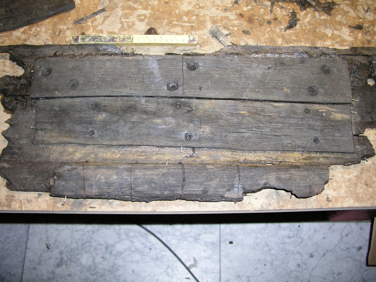 Två lagningslappar samt stringern (i bildens nederkant) på den fjärde bordgången (314).