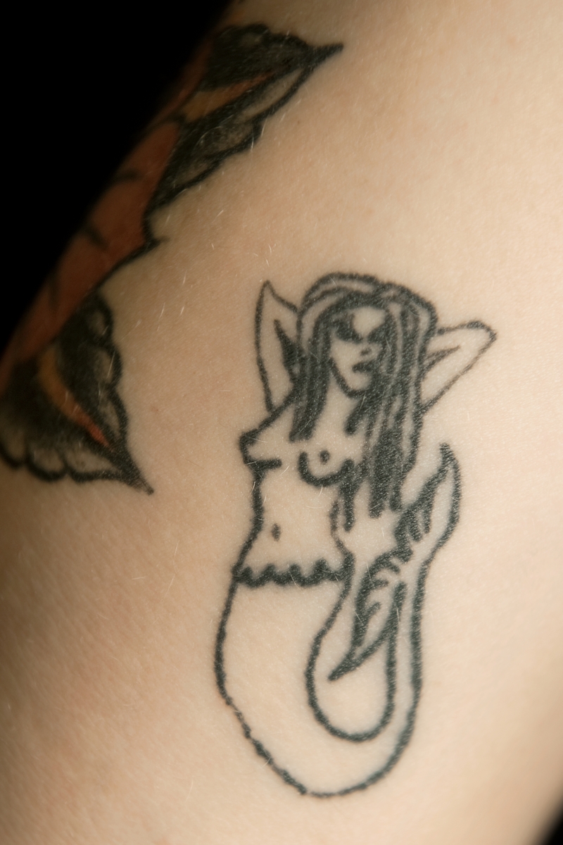 Porträtt och tatueringar på Johan Ray Pederson till utställning Tro hopp & kärlek på Sjöhistoriska.