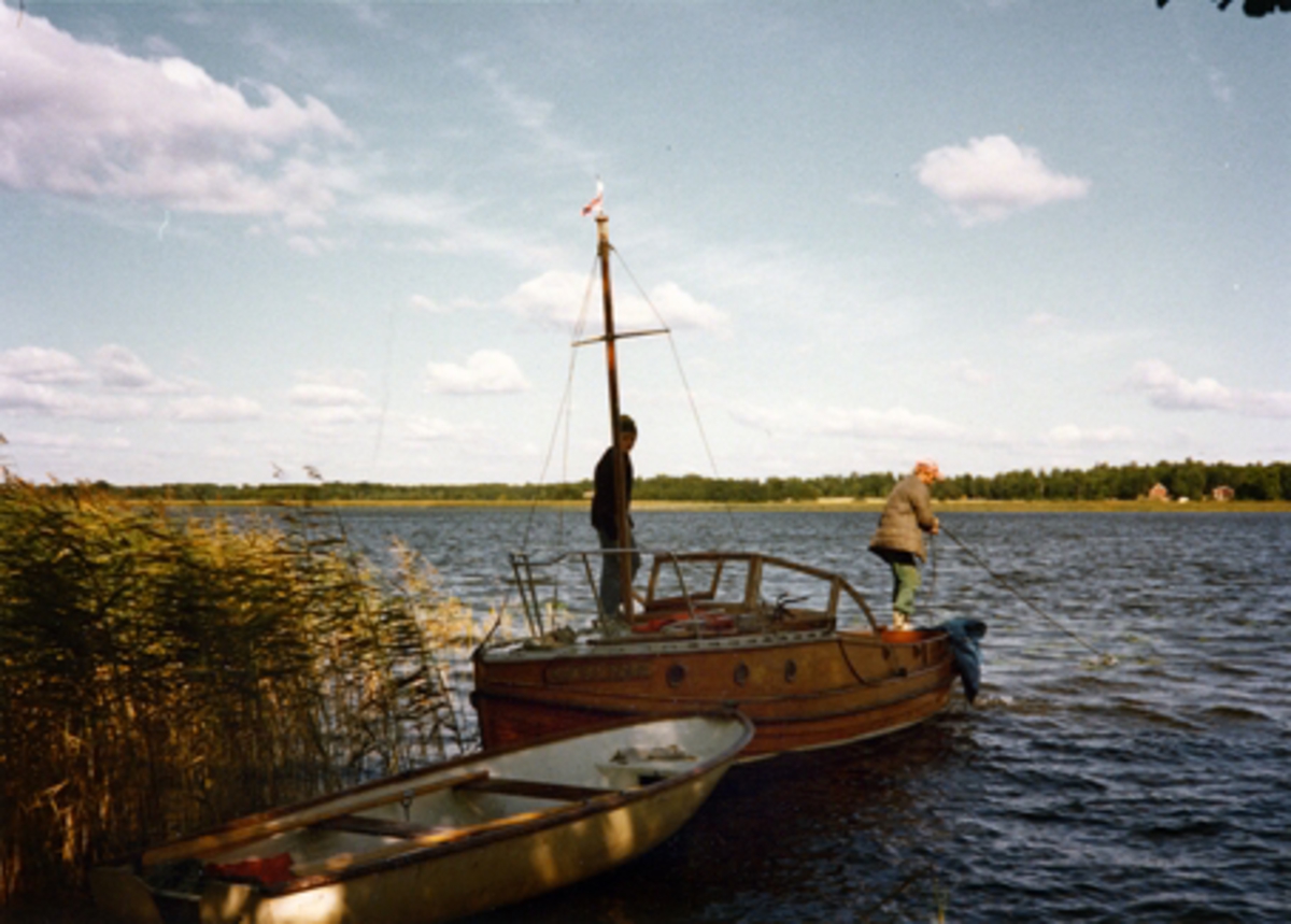 Tillhör rektor Stenström Rosendal, Tosterön [norr om Strängnäs]. I båten Kjell Borneland.