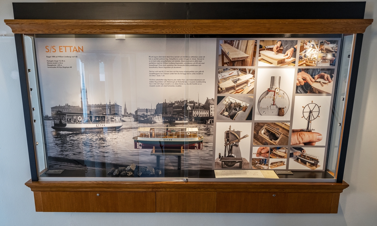 Trappmonter på Sjöhistoriska, modellbåt S/S ETTAN.