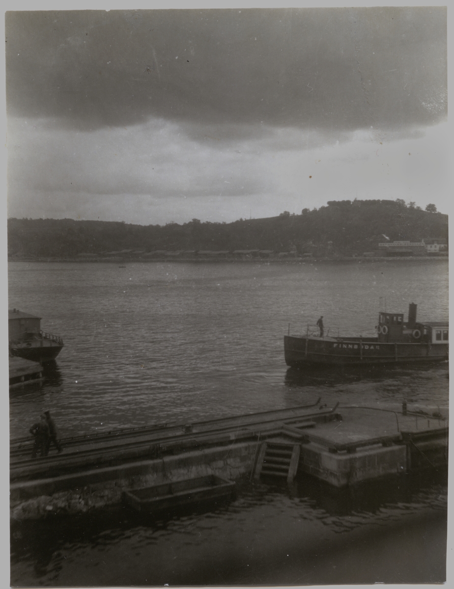 Fartyget FINNBODA II (urspr. WERMDÖ) vid Beckholmsvarvet, i söder berget Fåfängan.