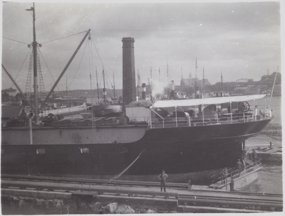 Beckholmsvarvets dockor 1920-talet, oidentifierat lastfartyg i östra dockan.