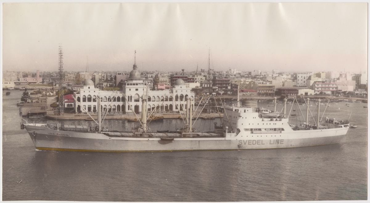 Lastmotorfartyget LISA BRODIN i Suezkanalens mynning i Port Said.