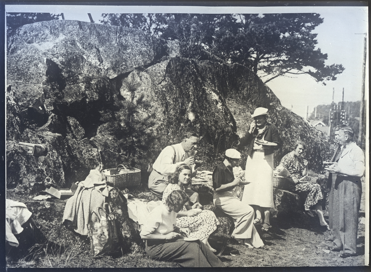 Sällskap på utflykt till skärgårdsö (?), sannolikt 1930-tal