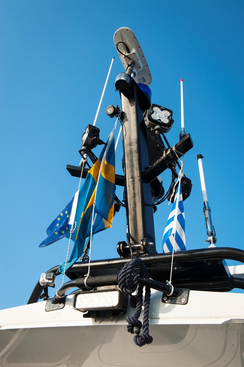 Antennmast med svenska och grekiska flaggan.